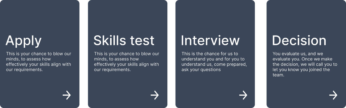 We trust our team members to take ownership of their work and projects. When you're responsible for something, you have the autonomy and support to see it through.